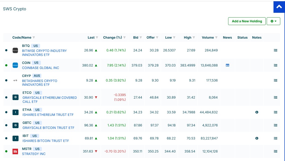 Using the available proxy (IBIT for BITQ) and (ETHA for ETHUSD) as covered in Gary’s presentation.